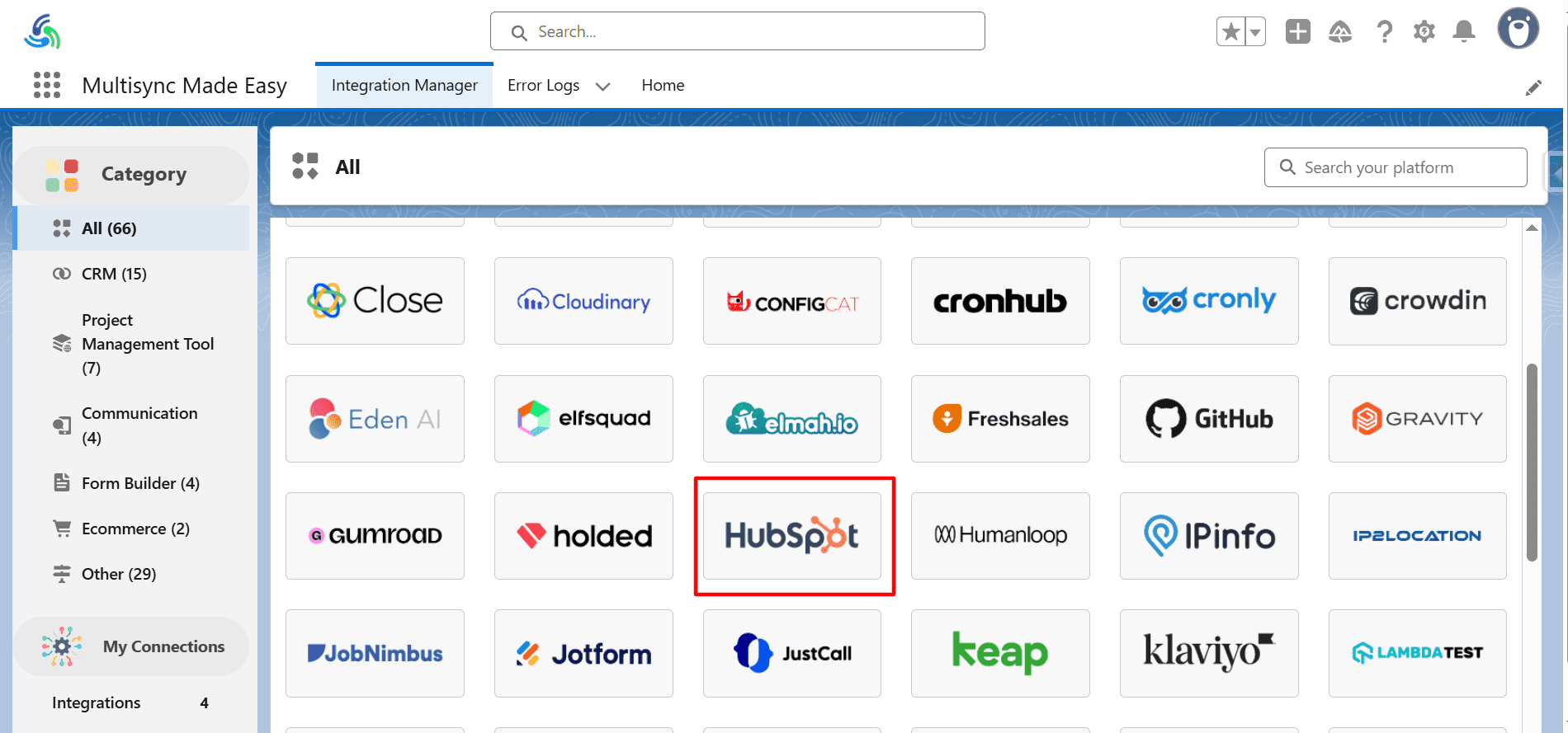 Step 14. Select your desired platform (here we select HubSpot) and click on it.