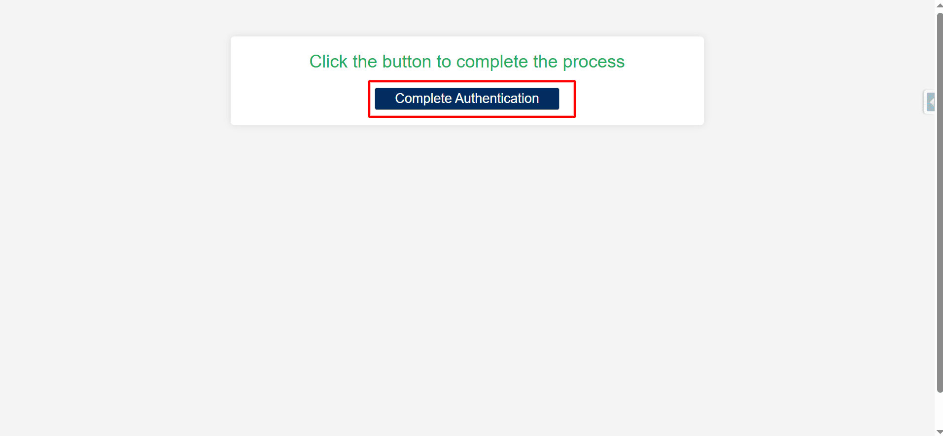 Step 18. After clicking on Save & Authenticate, you will be redirected to the page below, where you will click on the Complete Authentication button.
