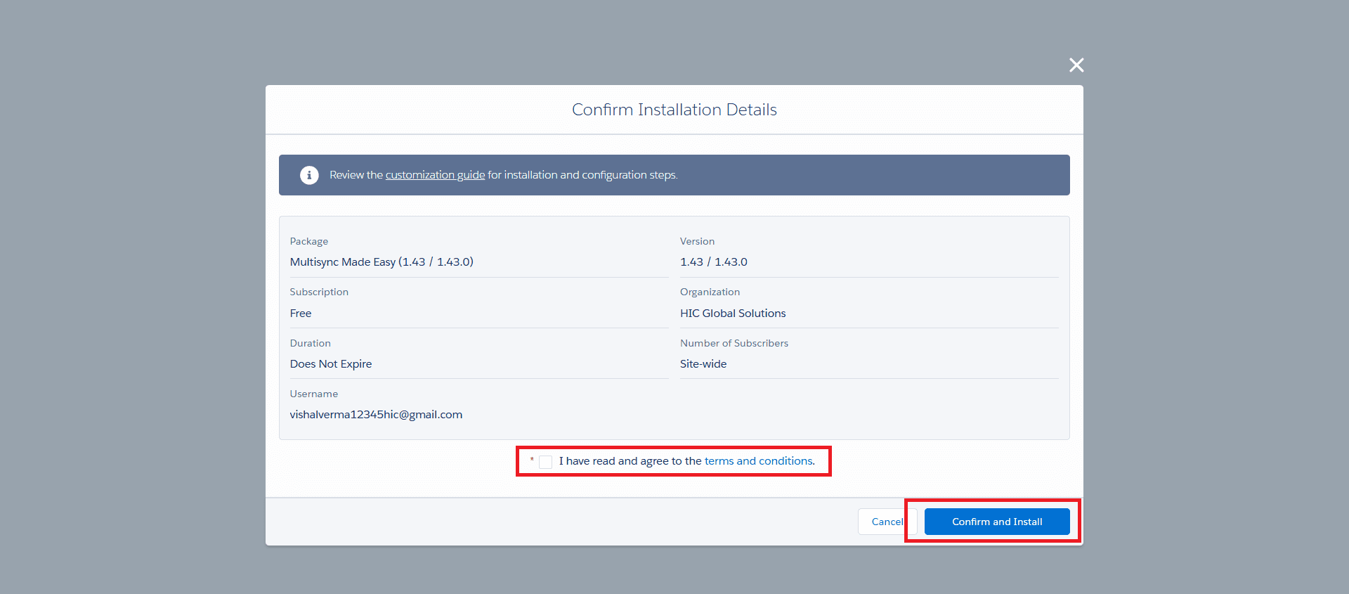 Step 6. You will be redirected to the Confirm Installation Details Page.